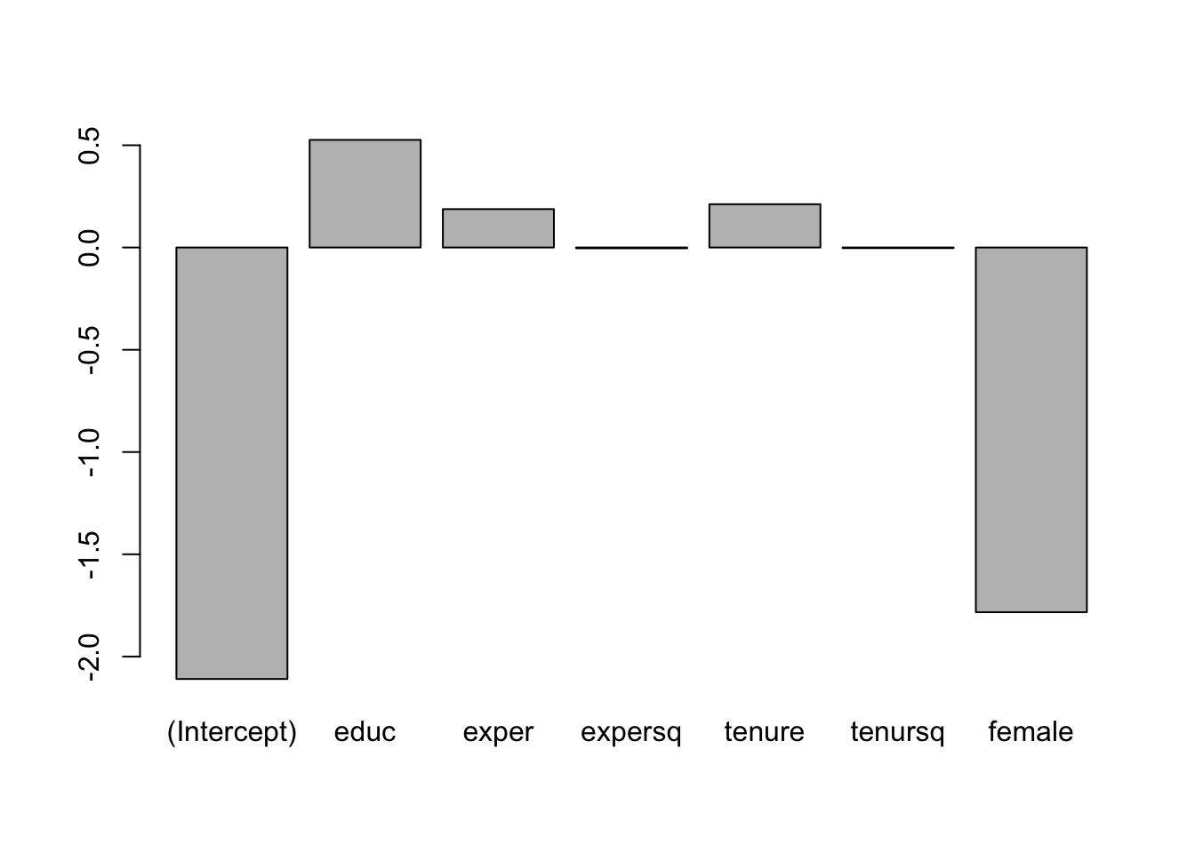 Plot the coefficients, representing percentage impact of each variable on log(wage) for a quick comparison.